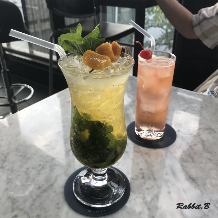 저희는 목이 너무 말라서 들어가자마자 바로 마실 수 있는 칵테일을 먼저 시켰습니다. 저는 '망고 모히또'를 시켰고요, 친구는 '피치 크러쉬'? 인가 시킨 것 같네요.