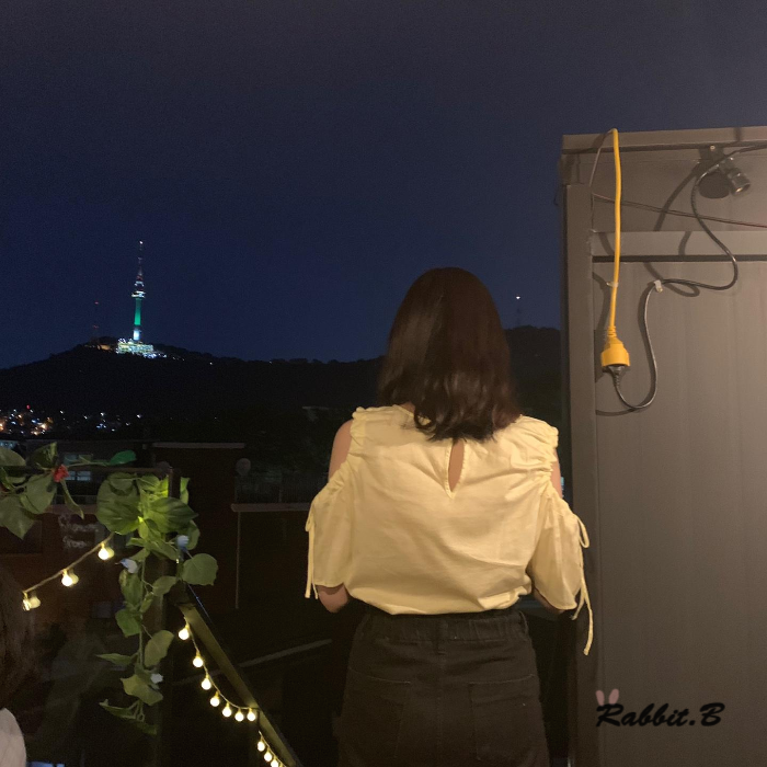 마지막으로 가기 전에 여러 군데에서 사진을 찍다가 내려가는 계단 앞에서 건진 컷*-* 저어 멀리 남산타워가 보이네요. 한 번도 가본 적이 없지만 나중에 가게 되겠죠? 야경도 예뻐서 마지막까지 알차고 즐겁게, 배부르게(제일 중요) 잘 보낸 하루였습니다~^^